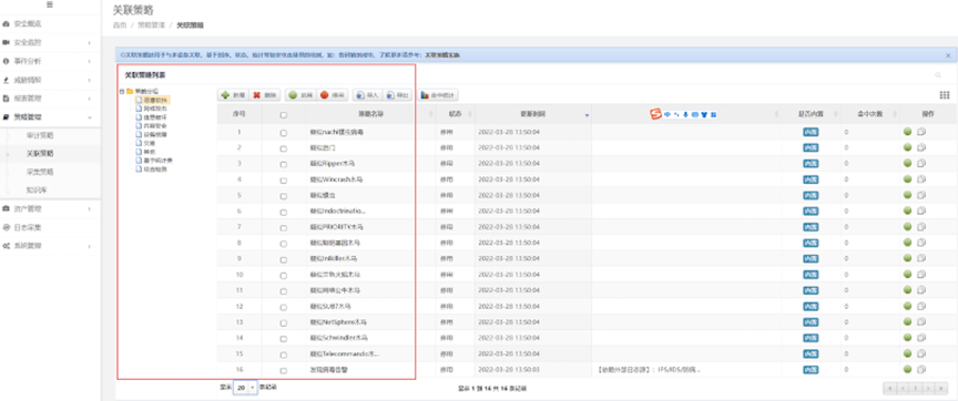 检验日审功能的另一个试金石是关联分析能力。针对日志自动化、集中度、关联度不够的问题,凯发k8官网数码DCSSA日志审计系统支持基于规则、统计、情报的分析模型,内置丰富的安全策略模板、高效的实时关联分析能力、灵活的审计策略,充分发挥日志分析及审计机制的最大效力。帮用户实现对日志的关联性处理,让用户能有效处理纷杂无序的日志信息。