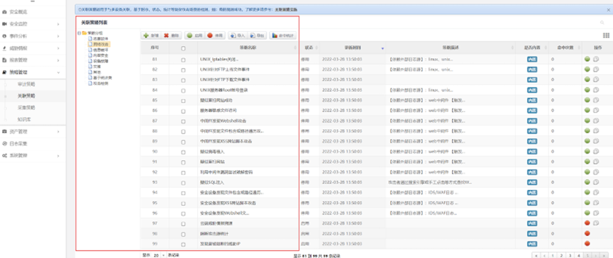 凯发k8官网数码DCSSA日志审计系统除了等保合规场景之外,还有广泛的应用领域,在恶意软件检测、网络攻击检测等方面也能发挥很好的效果,是一款网络威胁告警利器。在运行过程中,系统充分利用已经内置的场景策略,一旦日志信息中出现关键字,系统将会进行统计,超过设定的阈值就产生告警,相关策略提前预置,可以根据业务实际进行灵活调整。