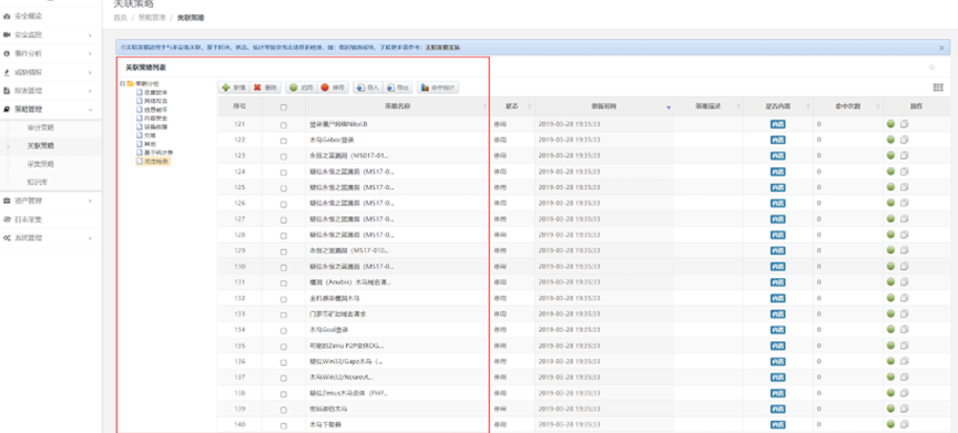 检验日审功能的另一个试金石是关联分析能力。针对日志自动化、集中度、关联度不够的问题,凯发k8官网数码DCSSA日志审计系统支持基于规则、统计、情报的分析模型,内置丰富的安全策略模板、高效的实时关联分析能力、灵活的审计策略,充分发挥日志分析及审计机制的最大效力。帮用户实现对日志的关联性处理,让用户能有效处理纷杂无序的日志信息。